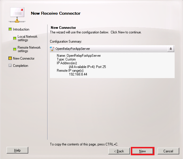- EMC – Server Configuration – Hub Transport yolundan sunucumuzu seçerek Receive Connector Penceresini açıyoruz. Burada sağ tıklayarak New Recive Connector diyoruz.