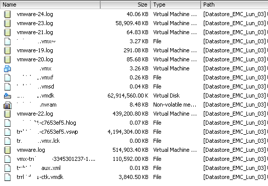Bu tür durumların en kötü yanı, sunucuda Snapshot artığı meydana gelmesidir. Daha önce Acronis Advanced Server’da sıkça rastladığım probleme, Backup Exec ilede rastlamış oldum. Sanapshot Manager’dan bakıldığında herhangi bir problem yok iken, Datastore browse edildiğinde artık VMDK dosyası görülmektedir.