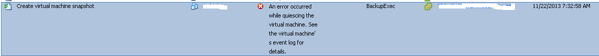 Backup Exec 2012 ile backup alımı sırasında, “An error occurred while quiescing the virtual machine. See the virtual machine’s event log for details.” hata mesajı ile karşılaştım. ![]()