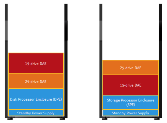 Disk Processor Enclouser (DPE) : Kabinde 3U büyüklüğe sahiptir. İlk disk ünitesine ve SP’lere ev sahipliği yapmaktadır. VNX5100/5300/5500/5200/5400/5600/5800/7600 modellerinde kullanılmaktadır.