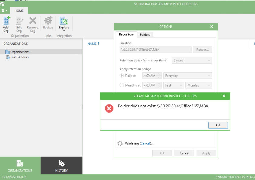 Veeam Backup for Office 365 ürünü ile yedeklerinizi NAS alanına aldırmak isterseniz “Folder does not exist” yada “Not Found” hataları ile karşılaşma ihtimaliniz çok yüksek.