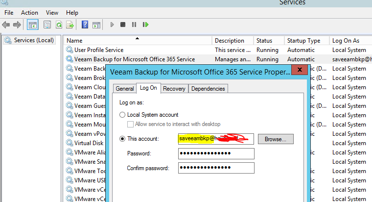 - Paylaşım alanında izinli kullanıcı sunucu üzerinde “Administrator” grubunda olmalıdır ve Veeam servisi bu kullanıcı ile başlatılmalıdır.