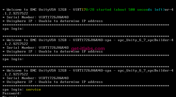 - Deploy işlemi sonrası Unity VSA ‘nın boot işlemi için biraz bekliyoruz. Sonrasında service – service bilgileri ile konsol üzerinden logon oluyoruz.