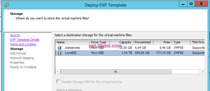 - Kurulum için bir datastore seçiyoruz.