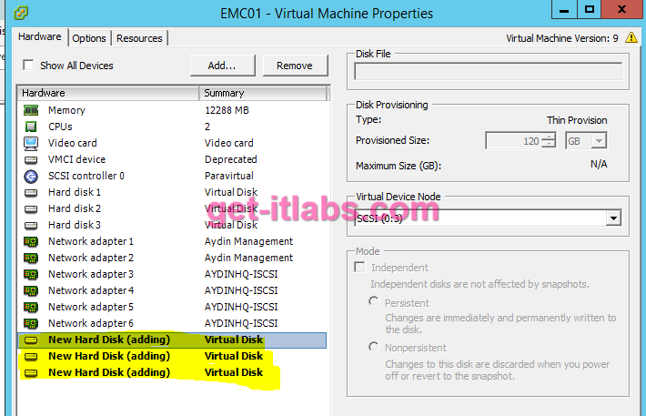 İlk makalemizde EMC Unity kurulumunu tamamlamıştık. Bu yazımızda ise Unity VSA’nın başlangıç ayarlarını yapacağız. Bunun için öncelikle uygulamanın ayarlarına giriyoruz ve üç adet disk ekliyoruz. Ben özellikle burada disklerin boyutunu birbirinden farklı seçiyorum. Çünkü Lab’ın ilerleyen bölümlerinde bu diskler ile ilgili çok kötü düşüncelerim olacak 🙂 .