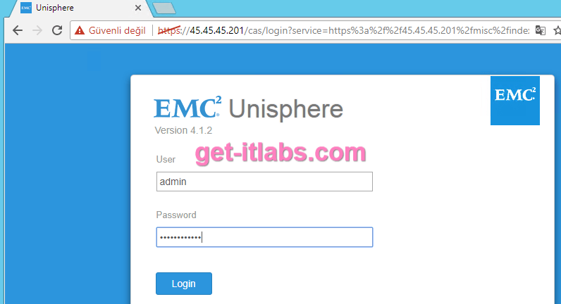 Disk ekleme işleminden birkaç dakika sonra yönetim arabimini Html 5 desktekleyen bir browser ile açıyoruz. Unity VSA ‘ların varsayılan kullanıcı adı ve şifreleri, admin – Password123# tür.