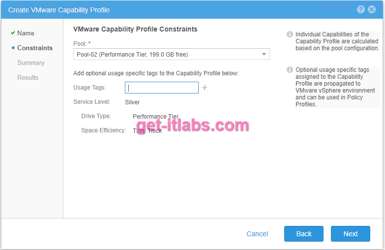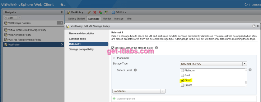 İlk adımda oluşturduğumuz kriterlere karşılık gelen bir Storage Policy oluşturuyoruz.