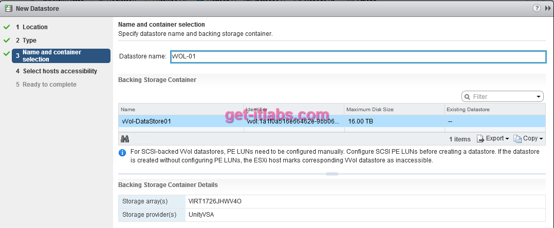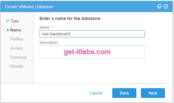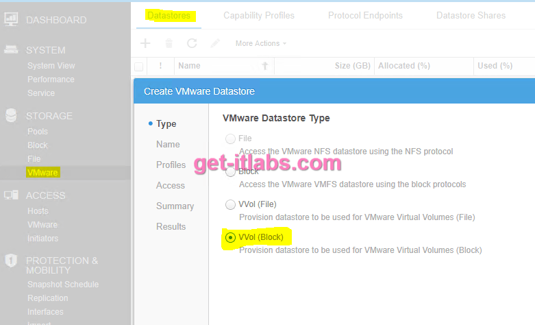 Datastore menüsünden, VVOL seçeneğini seçerek ilerliyoruz.