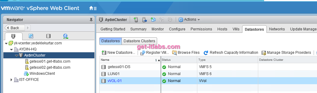 Artık datastore ‘umuz Vcenter ‘da erişime hazırdır.