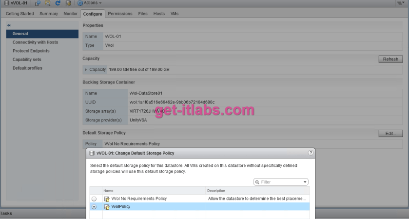Datastore özelliklerine girerek Vvol policy ‘sini uygulayabiliriz.