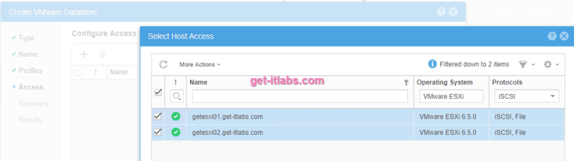 Bu datastore ‘a erişecek olan hostlarımızı seçiyoruz.