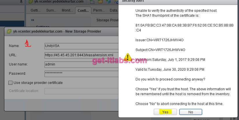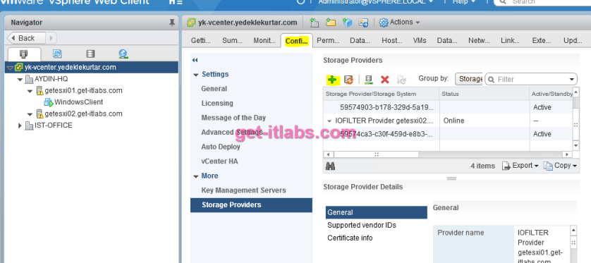 Vcenter – Configuration – Storage Providers menüsünden artı butonuna basıyoruz.