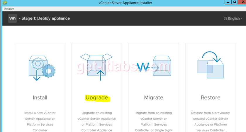 Kurulum bittikten sonra mevcut Vcenter yapımızdan bilgilerin kopyalanması sürecini başlatmak için ikici adım olan Upgrade işlemi ile devam ediyoruz.
