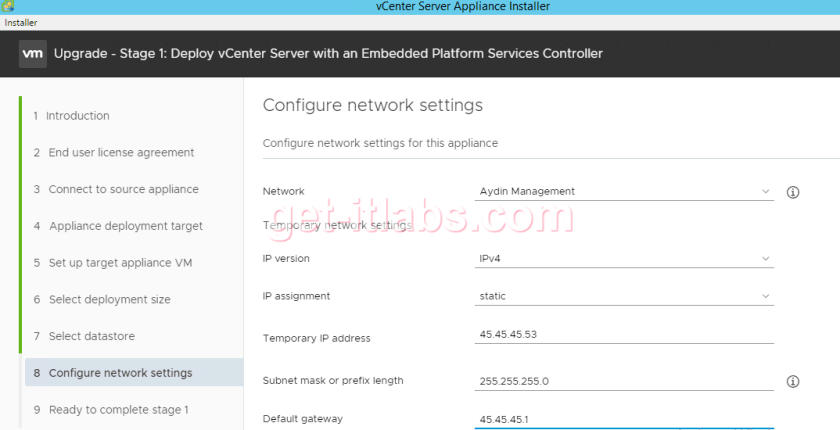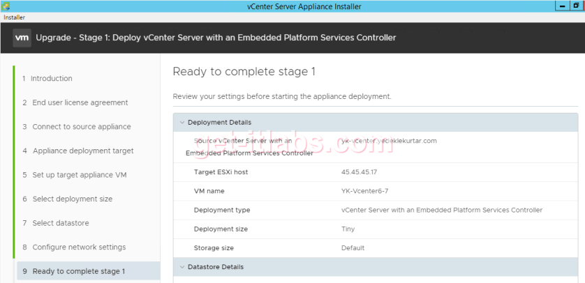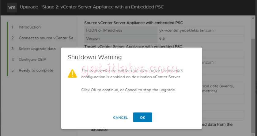Bilgilere göz gezdirdikten sonra işlemlere başlıyoruz bu aşamadan sonra mevcut Vcenter ‘ımızda kesinti yaşanacağı uyarısını kabul ediyoruz.