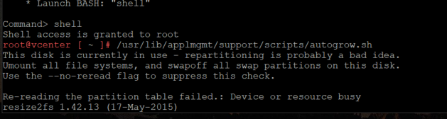 VCSA ‘ya SSH ile login olarak kapasite arttırımını otomoatik büyüme olacak şekilde yapılandırıyoruz.